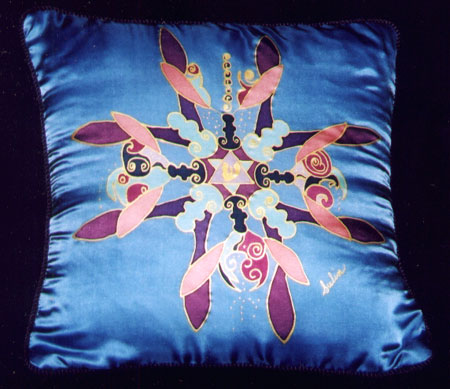 Full sized pillows are 16" offered individually or as a set. Backed with silk Noil, the edges are corded, inner pillows are removable.